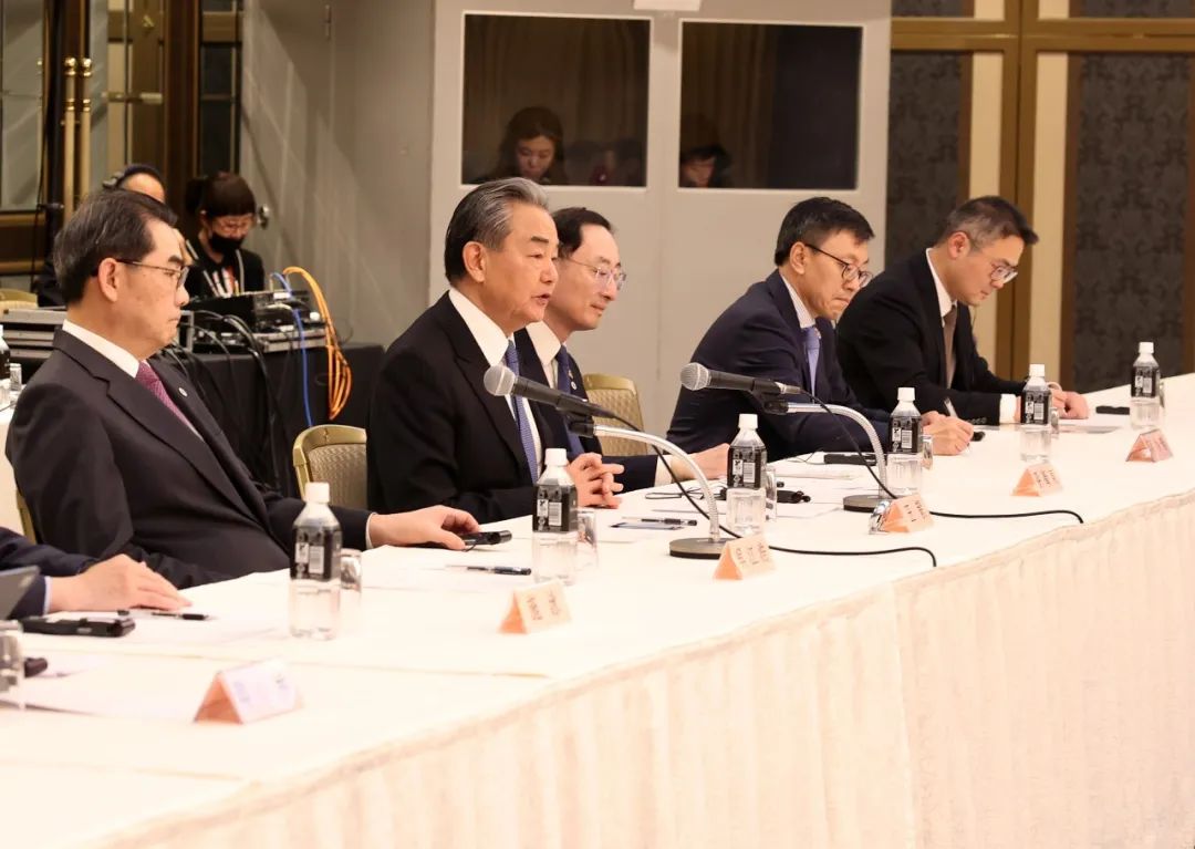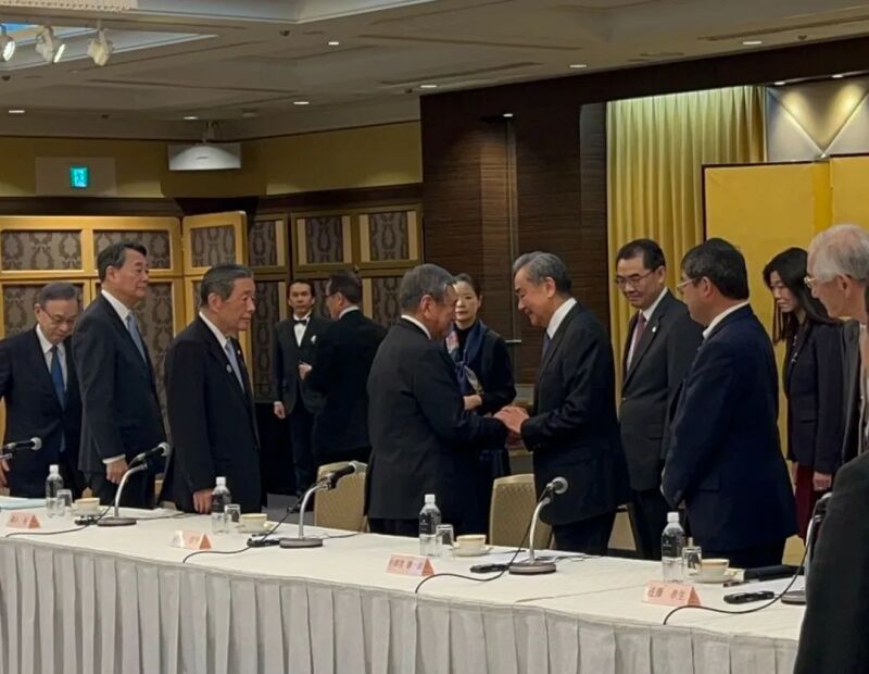 当地时间2025年3月23日,中共中央政治局委员、中央外办主任王毅在东京集体会见日中友好七团体代表。日中友好议员联盟会长、执政党干事长森山裕,日本国际贸易促进会会长河野洋平以及日中友好协会、日中文化交流协会、日中经济协会、日中协会、日中友好会馆等负责人参加。