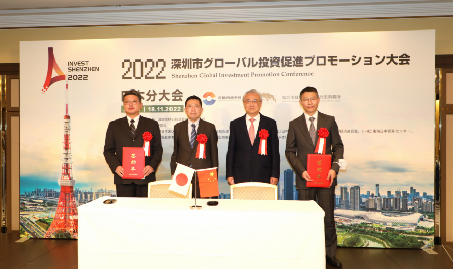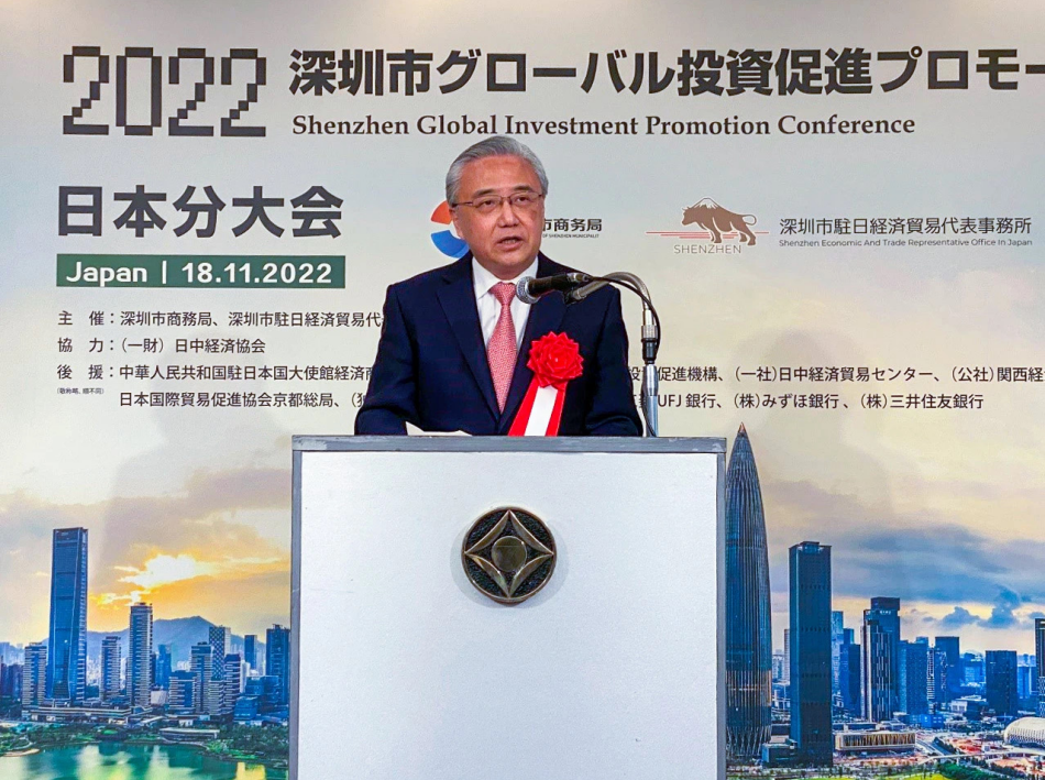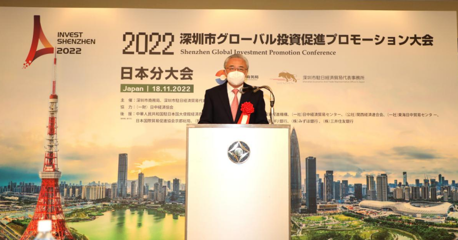 2022年11月18日,中国驻日本大使馆经济商务公使宋耀明应邀出席2022深圳市全球招商大会日本分会场活动并致辞。日中经济协会专务理事堂之上武夫、深圳市驻日经济贸易代表事务所首席代表田常浩等100余人出席活动。宋公使还出席了深圳市驻日经济贸易代表事务所与日中经济协会的合作意向书签约仪式。经商处三等秘书姜亚琼、宿景悦陪同出席上述活动。
